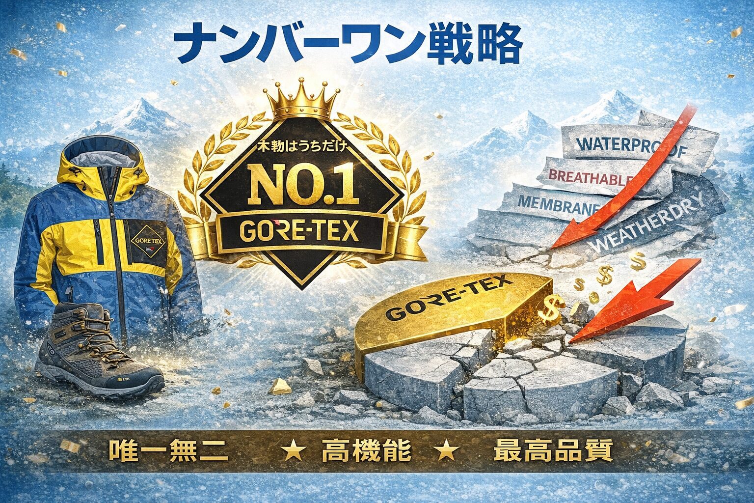 ナンバーワンであること、最終製品として責任を持つこと。その前提があるからこそ、高価格が説得力を持ちます。結果として、「どうせ買うならゴアテックス」という選択が生まれました。