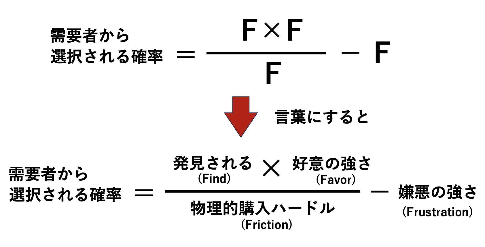 選択される確率 =(Find × Favor)÷ Friction − Frustration